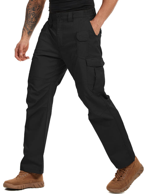 liyiyiyia Mens Black Cargo Pants Cotton Work Pants for Men Ripstop Trousers with 8 Pockets (No Belt) -